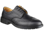 Amblers Men's Brogue Safety Shoe combines smart style with robust safety features, making it ideal for uniform use. The smooth leather upper includes a padded ankle collar for added support and comfort, while the PU outsole provides excellent slip resistance. With a steel toe cap that protects against 200 joules of impact and a nonmetal midsole guarding against 1100 newtons of penetration, this shoe ensures maximum safety.