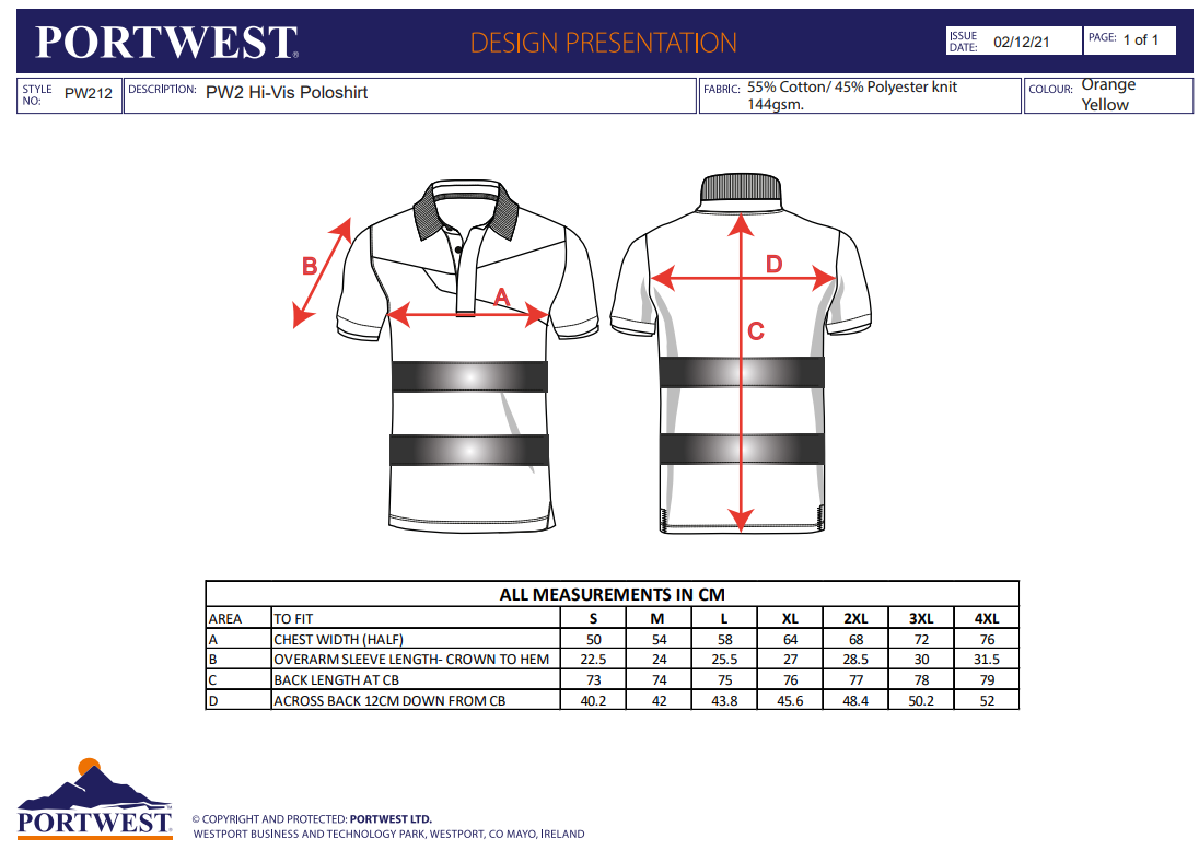 PW212 - PW2 Hi Vis Cotton Comfort Polo PW212